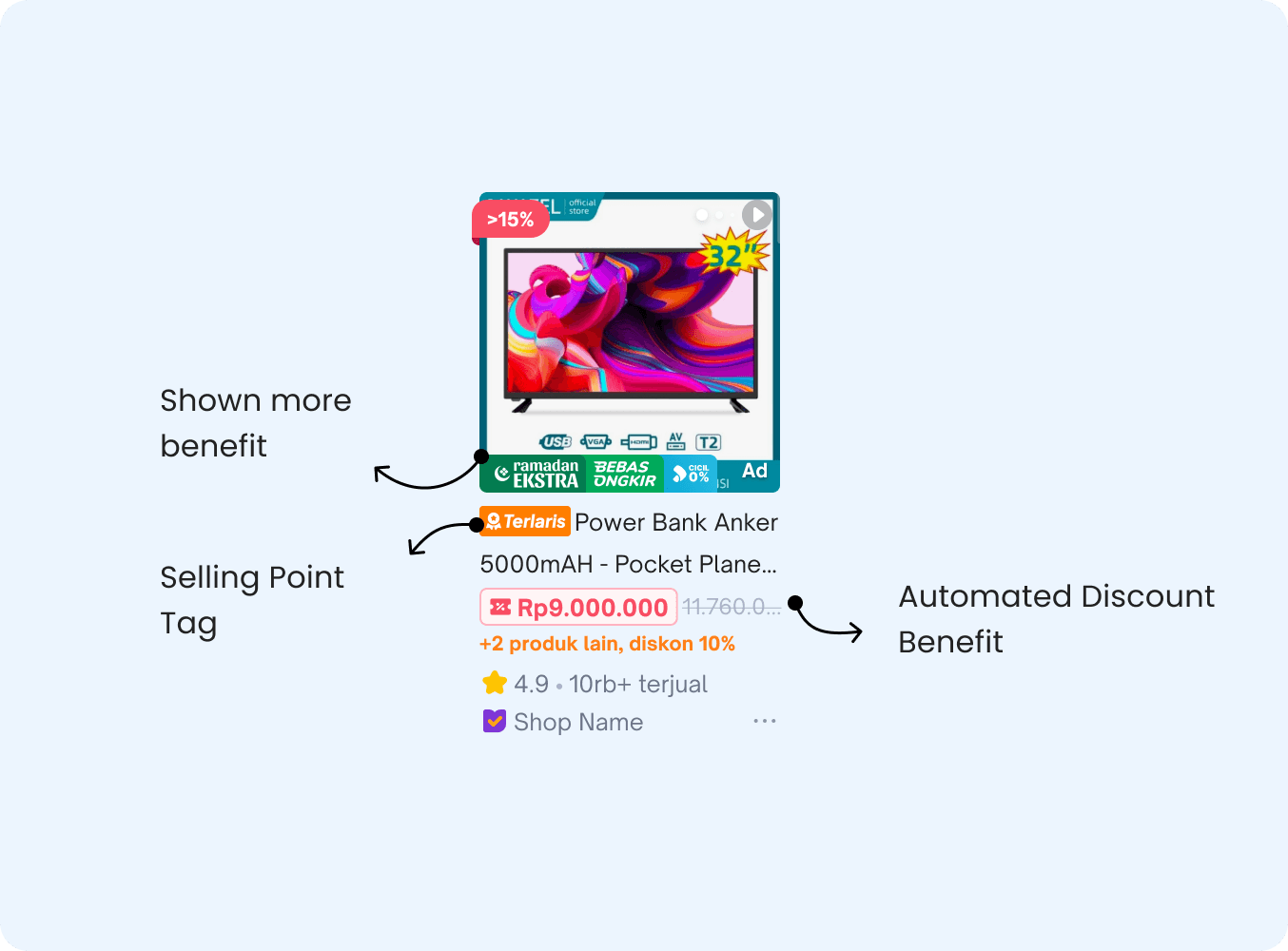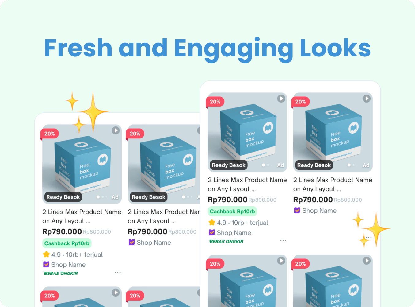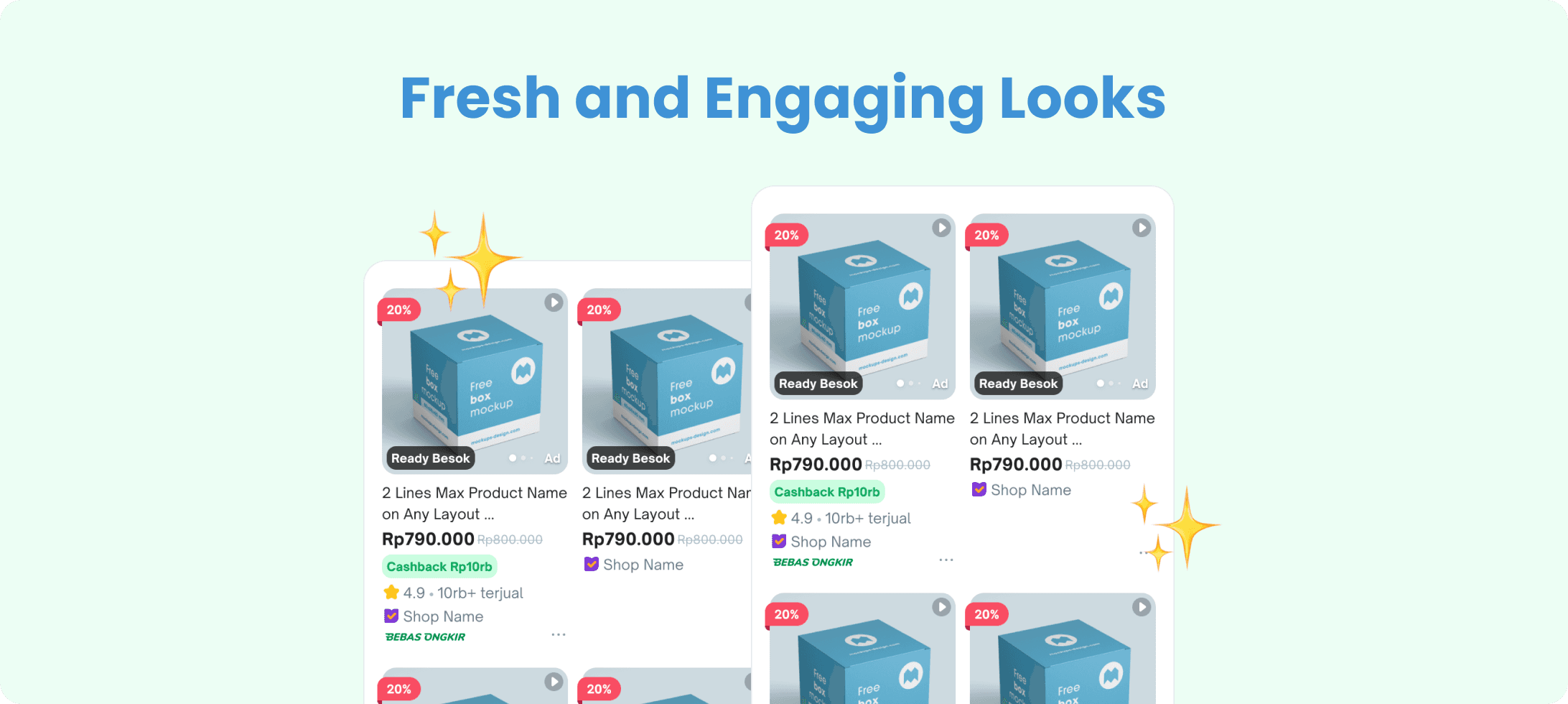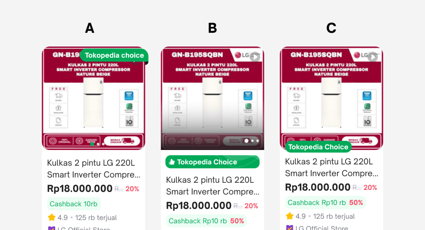 After extensive design iterations and collaborative discussions with other teams, we finalized a refreshed design for Tokopedia's product cards. This update introduces a modernized style, refined terminology, and improved logic to enhance both functionality and user experience.