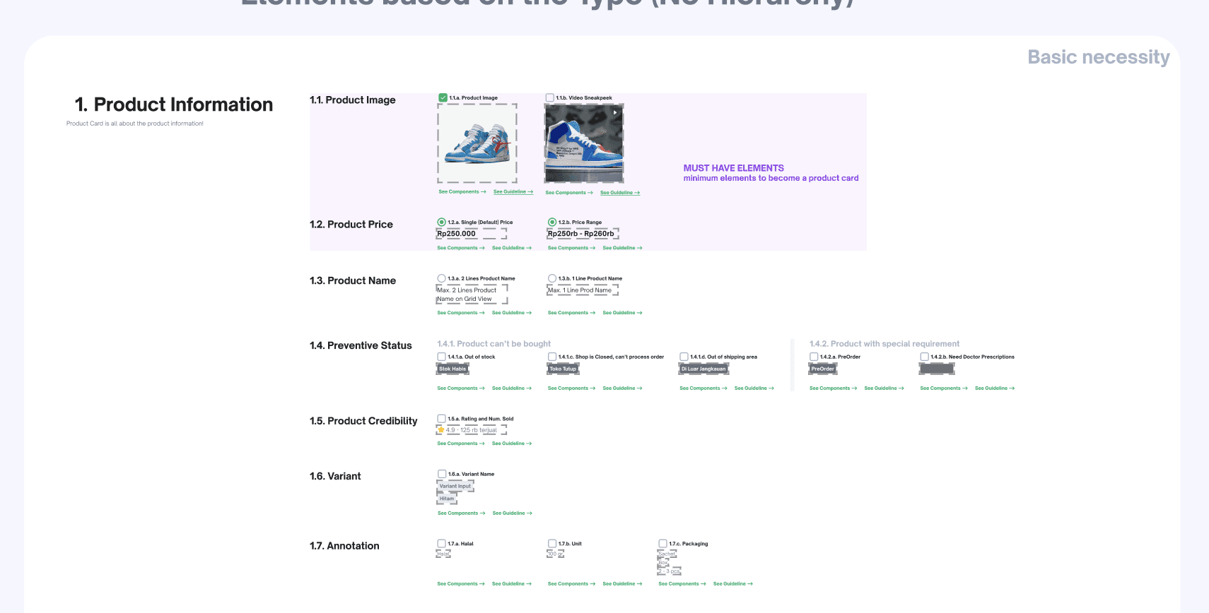 Develop a comprehensive design guideline for Tokopedia product cards.