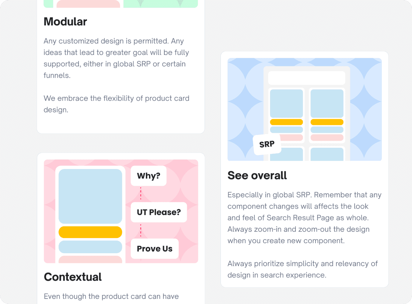 Not only the about the users, but we are also thinking about the usage of product card for internal side. We decide to develop and create a new principle and guideline to help internal teams know and understand how is the product card works. On this guideline we providing do and don’ts, use cases, logic explanations, guideline, and alo FAQ.